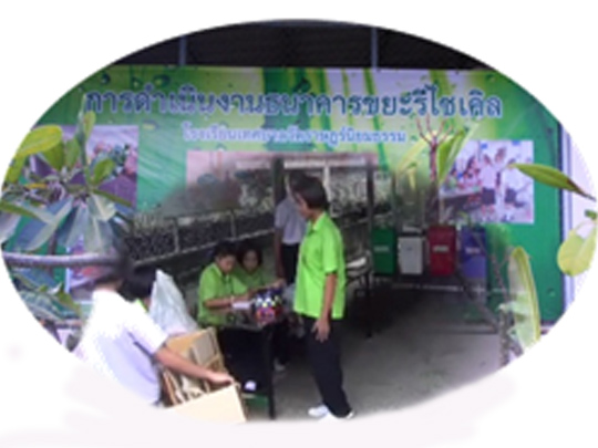 การจัดตั้งธนาคารขยะรีไซเคิล เพื่อบริหารจัดการแก้ไขปัญหาขยะที่ทวีความรุนแรงเพิ่มขึ้นเรื่อยๆ และยังเป็นการสร้างรายได้ให้กับ นักเรียน ผู้ปกครอง ชุมชนอีกด้วยการฝากขยะกับธนาคารขยะรีไซเคิล สามารถมาติดต่อได้ตามตารางการปฏิบัติงาน ดังนี้